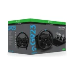 La compatibilidad es otro aspecto relevante del G923, ya que este volante no solo es funcional con las consolas Xbox, sino que también se puede utilizar en PC, lo que lo convierte en una opción versátil para diferentes plataformas de juego. En términos de construcción, Logitech ha hecho hincapié en el uso de materiales de alta calidad, como el cuero para el acabado del volante y acero inoxidable en los pedales, lo que asegura durabilidad y una sensación premium que se siente sólida y fiable durante el uso.